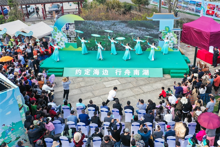 在活动现场,两区以“村歌”庆贺结对,余新镇民间非遗《爷爷的蚕猫》、干石览镇渔民号子《摇橹谣》唱出了本土特有的“家乡味儿”,让两地观众看到了各地不同的文化风貌。
