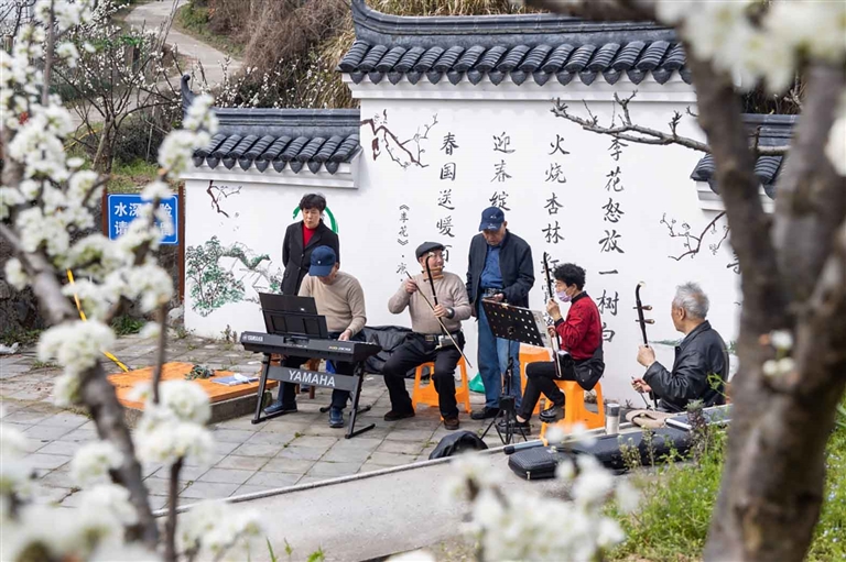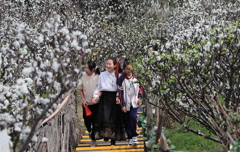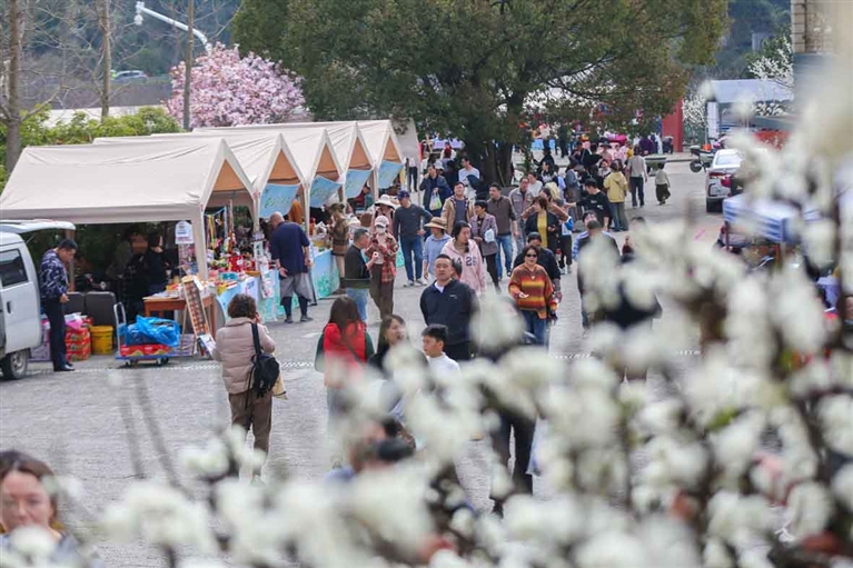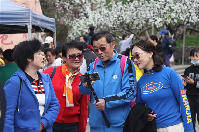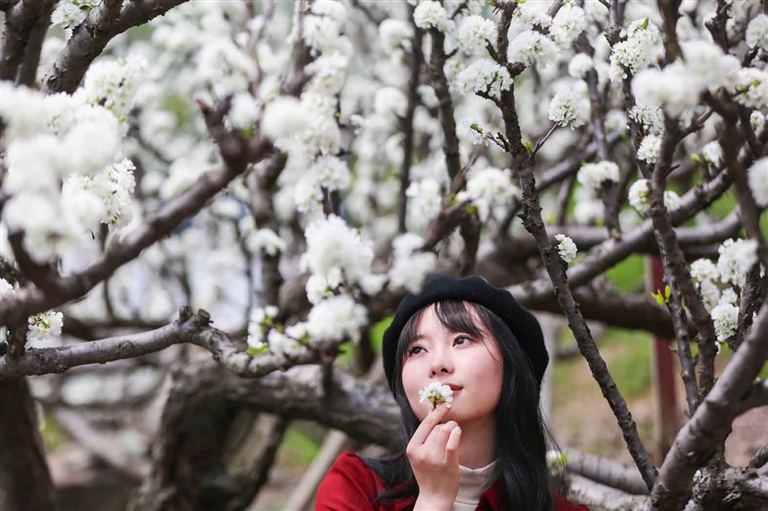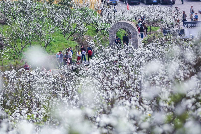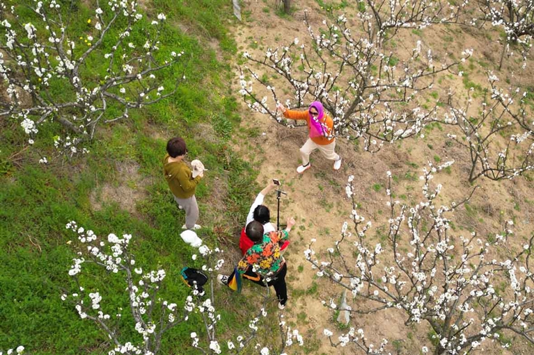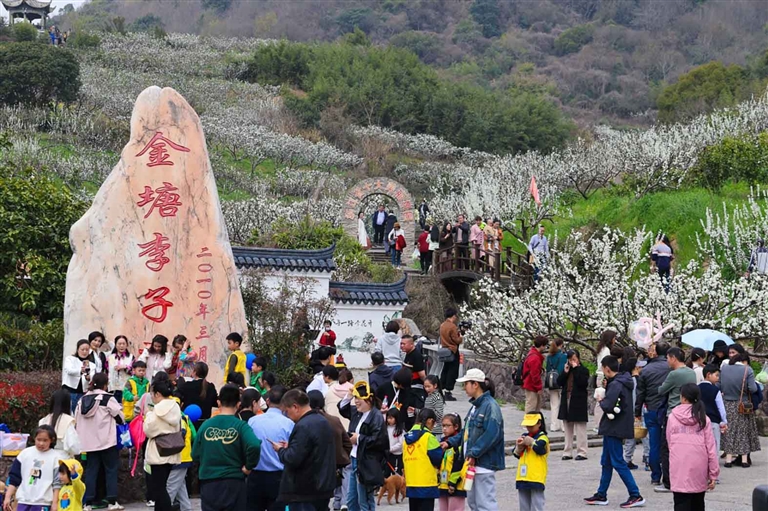 漫山遍野的李花竞相绽放,如白雪压枝,宛若一幅春日“雪景”。金塘也因赏花季而变得热闹起来,众多游客的到来催生“赏花经济”。