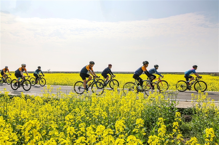 上周日,近20位来自宁波的骑友骑行在金塘岛的花海丛中。当天,他们在岛上穿花海、爬仙人山、骑行海塘边,全程五十多公里。通讯员 姚峰 摄