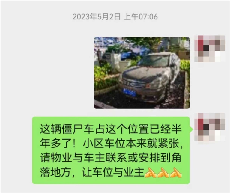 定海檀树社区副主任余君波告诉记者,这辆车一直以来是社区治理的一大“顽疾”,它的治理难点在于若车主不愿处理,从法律角度来说,这辆车属于私人财产,他人不能随意处置。“这一年多的时间来,我们和物业工作人员多次上门劝说,但是车主态度非常坚决,表示车辆没有报废,也不愿意挪车到小区角落里。如果挪车过程中车辆有任何磕碰,还会对物业和社区进行追责。没有相关法律法规,我们确实没有权利在不经过车主同意的情况下直接挪车。”