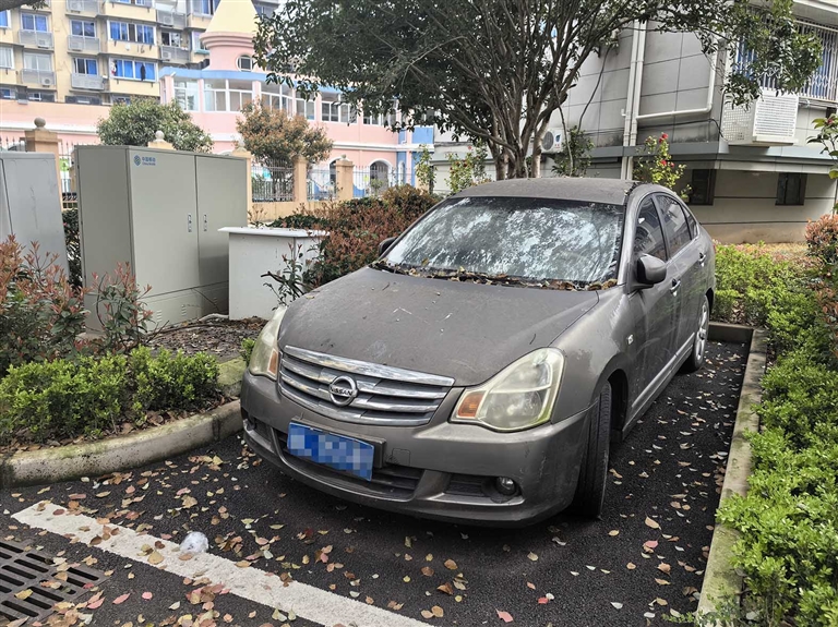 近日,家住定海檀树新村北区的市民高先生致电本报热线电话称,在小区内有业主把车停在公共车位上已有近两年时间。看着小区本就紧俏的停车位被这辆布满尘土、锈迹斑驳的“僵尸车”占据,每天为抢车位而苦恼的高先生无奈又气愤。