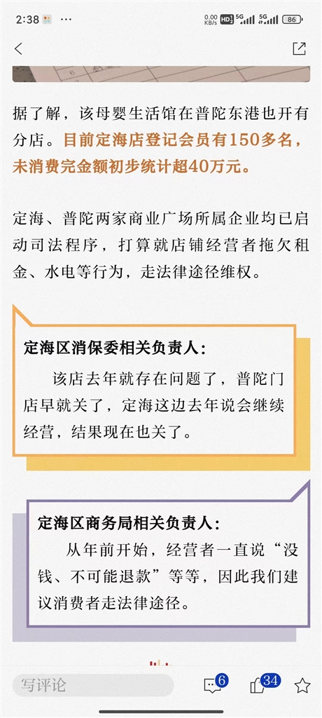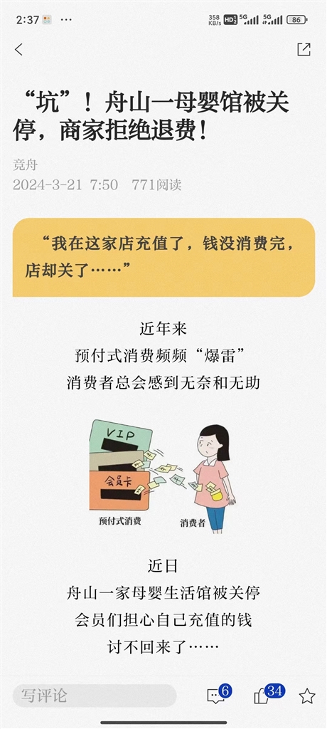 近日,定海某知名商业广场2楼的一家“贝贝豪斯”母婴生活馆被关停,商家拒绝退还预付卡内的钱,不少消费者担心自己充值卡的钱讨不回来了。预付式消费频频“爆雷”,消费者总会感到无奈和无助。