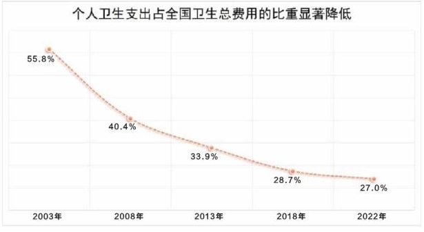 在不断完善的医保制度的有力支持下,全国居民就医需求快速释放,健康水平显著提升。据统计,2003至2022年,我国医疗卫生机构总诊疗人次数从20.96亿人次增长至84.2亿人次;全国居民平均预期寿命从2005年的72.95岁增长到2020年的77.93岁。与此同时,个人卫生支出占全国卫生总费用的比重却从2003年的55.8%大幅下降至2022年的27.0%。近14亿医保参保人享受更高水平的医疗条件、更大范围的医疗保障、更高比例的医保报销、更为便利的医保服务的背后,是中国医保制度为人民生命健康的保驾护航。