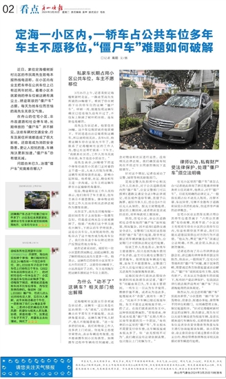 定海一小区内,一轿车占公共车位多年 车主不愿移位,“僵尸车”难题如何破解