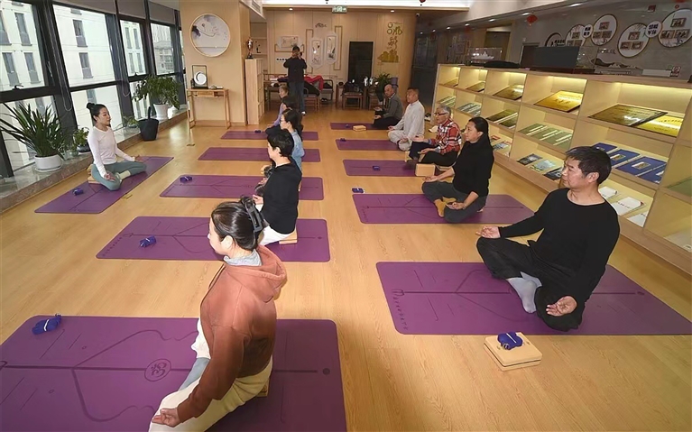 教室里,老友重逢、师生相聚,展望新学期,畅聊新规划。教师情绪饱满,学员热情高涨。“我以前一直渴望练习瑜伽,这学期,军休老年大学想大家之所想,应大家之所需,开设了适宜的瑜伽课程,购买了活动器具,还聘请专业老师指导。在老师的带领下,我感受到瑜伽的魅力,也得到了身心的宁静与和谐,同时圆了我的瑜伽梦。”瑜伽班学员李快飞开心地说。