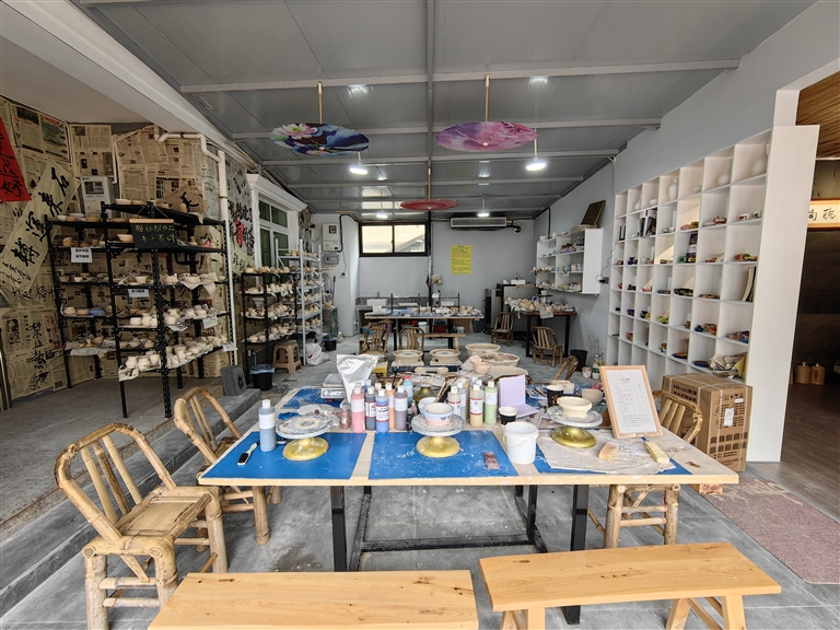 “我始终想打造一个轻松平静的氛围,‘看石头’也好,‘捏泥巴’也好,喝茶侃天也好,都是悠闲的。能在这里度过一段自在的时光,可能的话再带走一个心仪的作品,是我想要给到顾客的体验。也希望能通过陶艺吸引客人来路下徐,对乡村新业态的发展有些微小的贡献。”丁朝夕说。