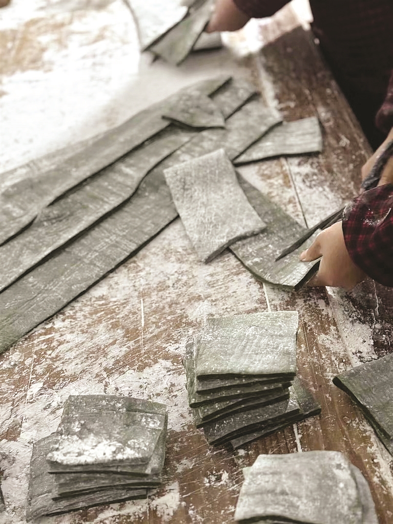 虾峙河泥漕,每年的清明节前十天,也是青饼工坊开始又一轮忙碌的时间。周阿姨和几个老姐妹,在这个季节,又开始做起了青饼。