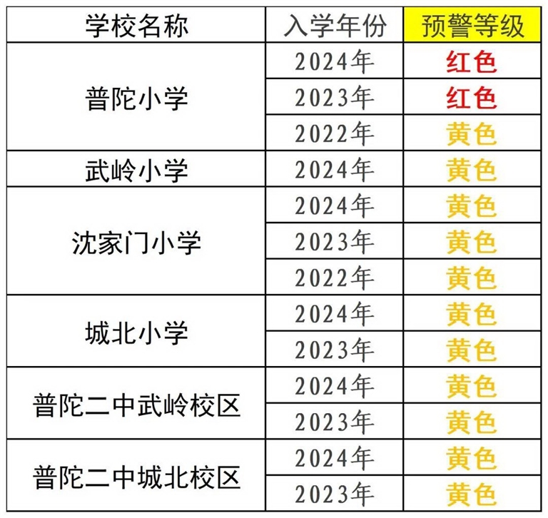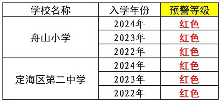 按照《浙江省教育厅关于建立义务教育阶段公办学校户籍生入学信息发布和预警机制的指导意见》(浙教基〔2018〕100号)相关要求,截至2024年3月,根据户籍管理部门提供的适龄儿童户籍人数,结合市区各校常态招生计划,舟山市教育局日前发布市区部分义务教育公办学校户籍新生入学预警信息。