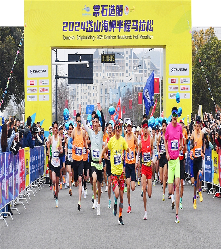 昨天上午8时,在这个春暖花开时节,常石造船·2024岱山海岬半程马拉松鸣枪开跑 记者 沈磊 摄