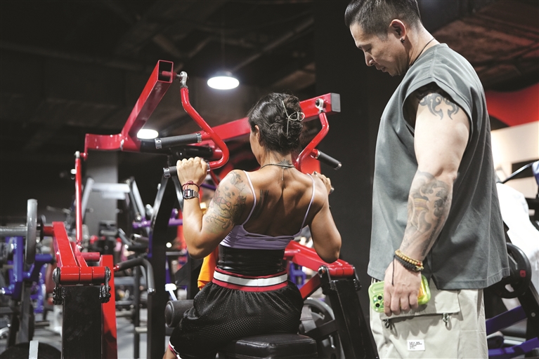 见到“饭饭”张超凡时,扎着丸子头、穿着运动服的她正带着会员健身,看上去青春活力,让人一下子无法和照片中的“金刚芭比”联系在一起。