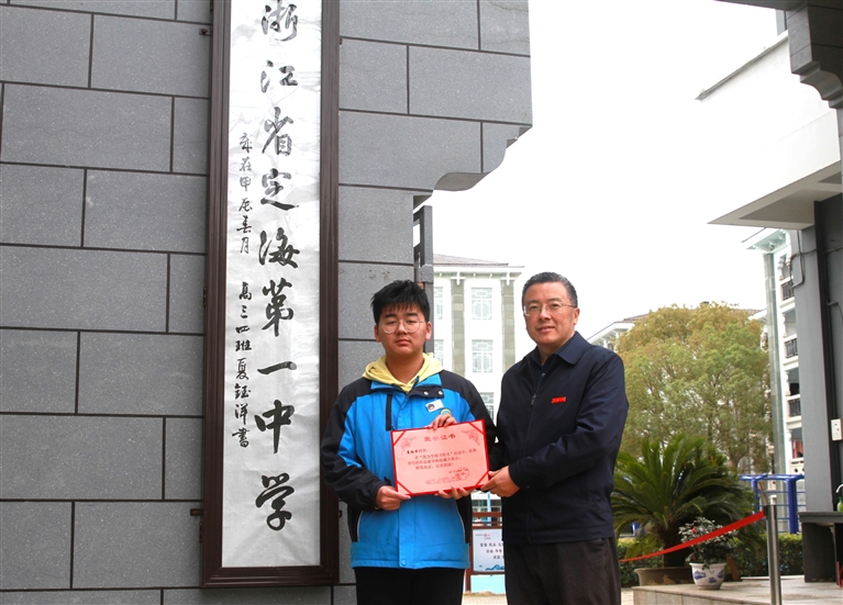 近日,定海一中举办了第二期“我为学校书校名”活动。其间,众多爱好书法的学生踊跃报名,参与活动。经过层层筛选,高三(4)班夏钰洋同学的作品最终入选,经装裱后展示于校园东门。活动进一步增强了一中学子的主人翁意识,也激发了大家爱书法、练书法的热情。 通讯员 费珍倩 苗景皓 段泽徐 文/摄