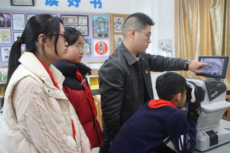 今年3月是我国第8个近视防控宣传月,今年宣传教育的主题是“减少近视发生,守护光明未来”。为此,六横镇蛟头初级中学、台门学校等校专门邀请当地医院的眼科医生到校,开展相关活动,并为部分学生进行了视力检测。 通讯员 刘生国 徐建君 贺苗 文/摄
