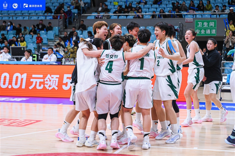 上海交通大学女篮获胜后的喜悦