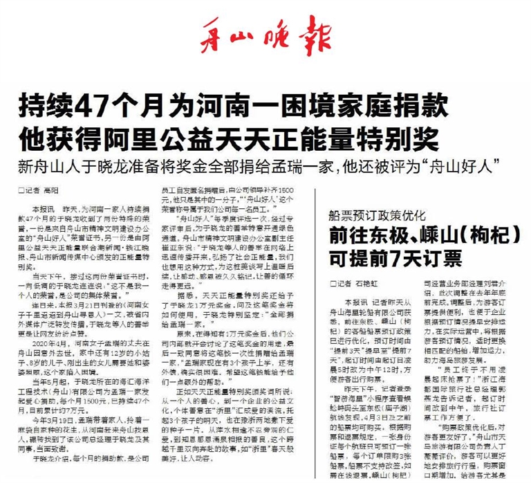 《 舟山晚报 》( 2024年04月02日 第 05 版 )