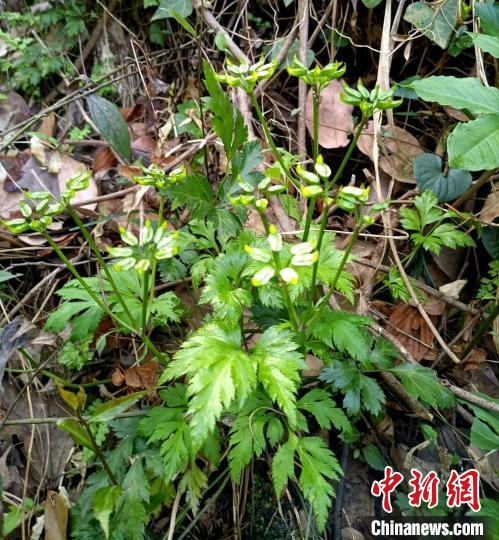 这片野生黄连生于海拔420米左右林地内,周边生长着野核桃、杨树、化香树、栓皮栎等树木,临近溪流,土壤肥沃,生态环境良好。管护员在近300平方米范围内发现,生长野生黄连58株,有的纤细翠绿,有的丛生旺盛,有的已含苞待放。
