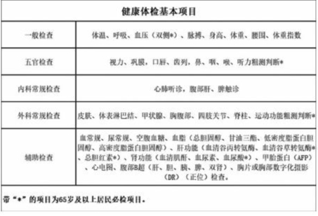 城乡居民体检项目为基本项目+选检项目。
