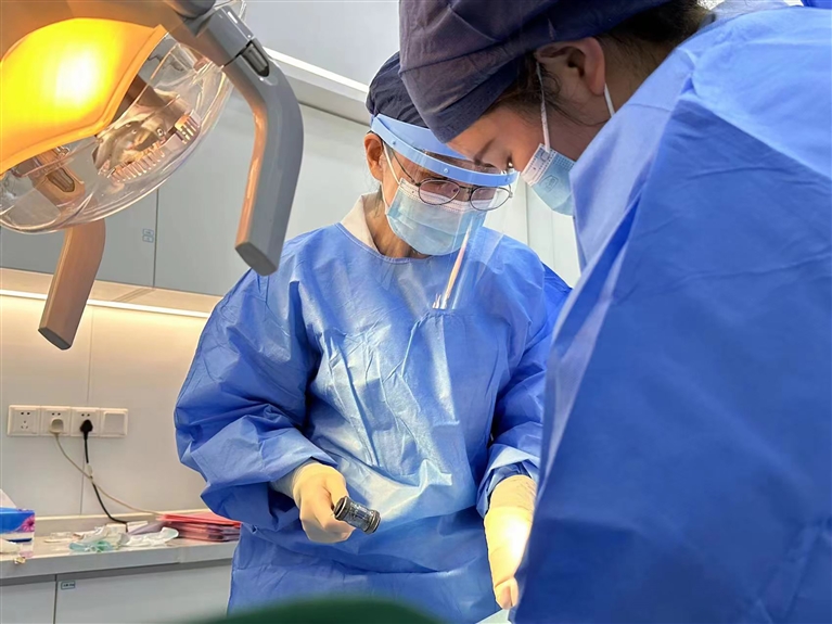 曾有一位老人因为缺牙年限较久,加上先天性骨牙发育不好,又患有骨质疏松等疾病,于是王思远邀请到上海专家团队,通过穿颧手术,给这位老人进行了即刻种植,让老人终于可以舒心地吃上饭了。