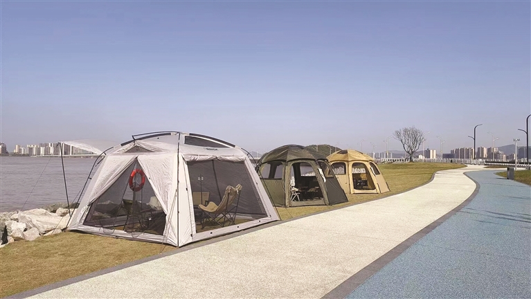 最近这两个月,每到天气好的周末,新城小干岛海边的帐篷就是城市一道靓丽的风景线,大家坐在帐篷里享受着愉快的露营时光。
