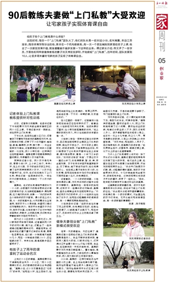 90后教练夫妻做“上门私教”大受欢迎