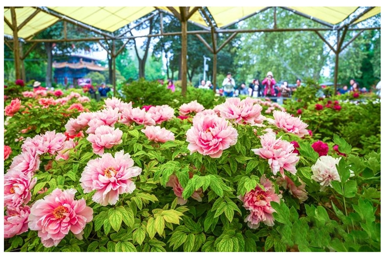 眼下,正是洛阳牡丹盛开的季节。在王城公园内,目前共有550个品种牡丹开放,飞燕红装、菱花湛露、金丝贯顶、胜葛巾、姚黄、首案红等品种牡丹,绽放出倾城之姿,吸引了海内外游客前来赏花游园。人民网 图