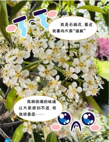 石楠花气味虽刺鼻,但无害。专家表示,石楠花除了臭没有别的缺点,一年四季都有观赏性,还有助于降尘和稀释有毒气体,能起到净化环境的作用,甚至能驱蚊。