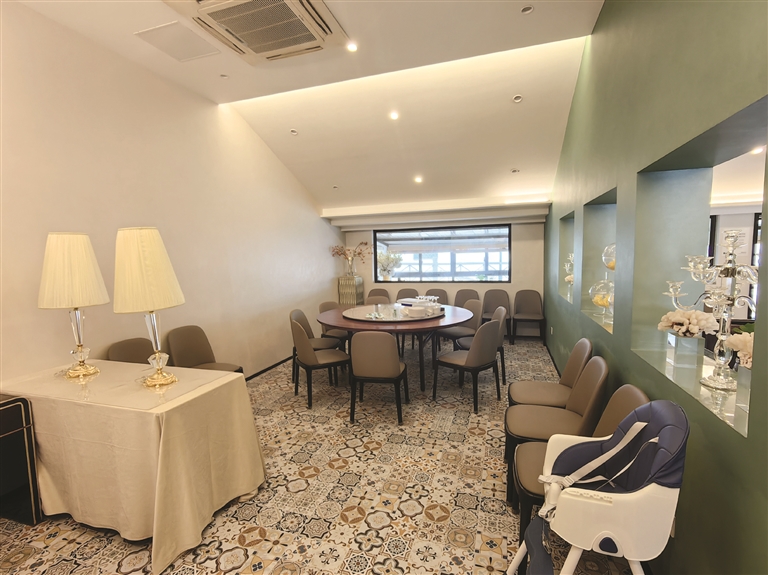由于原先从事建材行业,乡井食府的装修是老板一手设计的,“花了大约60万,还不包括各种饰品。因为做这一行,我们对装修设计比较看重。我们的规划一直很明确,要做就要做能够给到综合服务的中餐馆,因为方方面面都考虑到了,所以店面积不大,但实用性很强。”