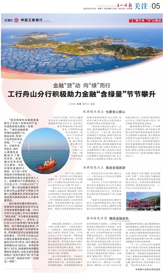工行舟山分行积极助力金融“含绿量”节节攀升