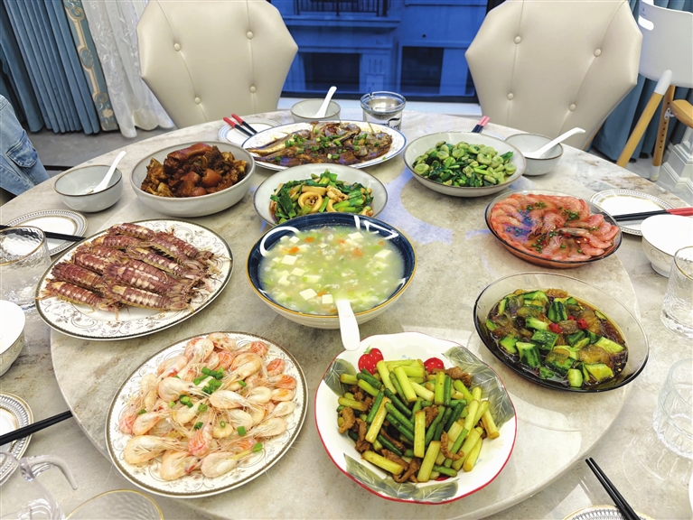 接到工作日晚餐的单子,阿璐一下班就赶过去,两个小时内可以做完菜,连带着收拾完厨房,打扫好卫生。接到十几个菜的大单子,夫妻俩就一起上阵,小应擅长炒菜煲汤,阿璐擅长舟山本地菜,两人搭配起来默契十足,两个多小时就能张罗出一桌菜。