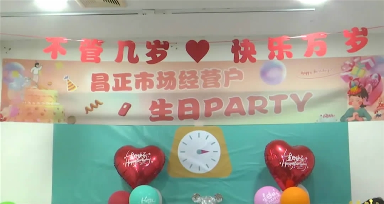 除了公共厨房,市场内还有一间经营户之家,记者采访当天,大家正为十多名本月生日的经营户举办一场集体派对。