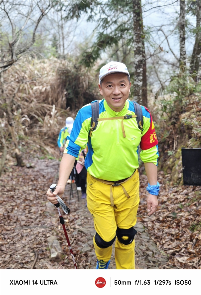 我平时的生活其实挺简单,每天早晨起床锻炼,晚上散步,帮着养好第三代,加上组织一周一次的虎行活动。作为舟山全民健身运动的形象大使,我也带有一种使命感,希望能在舟山更好地推广徒步、登山等户外运动。健身运动是最经济、最省力、最简便的方式,它能让我们保持身心健康和阳光向上的精神面貌。