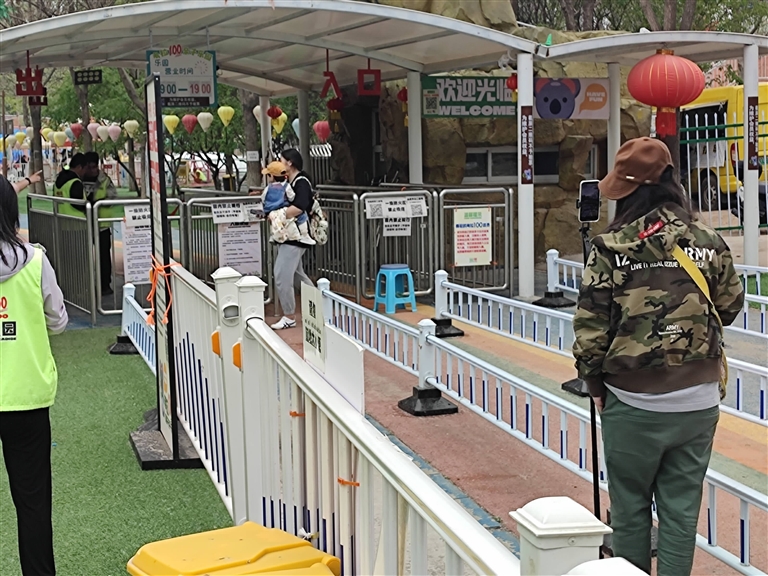 在大兴区一个儿童乐园入口,从一大早8点多钟开始,主播就对着门直播。每一个入园游玩的孩子,都会被她拍到。主播不厌其烦地推荐着乐园的套票,“咱这儿有两大一小套餐啊,家人们可以留意一下。乐园里有萌宠、有过山车,套票全含,畅玩。”