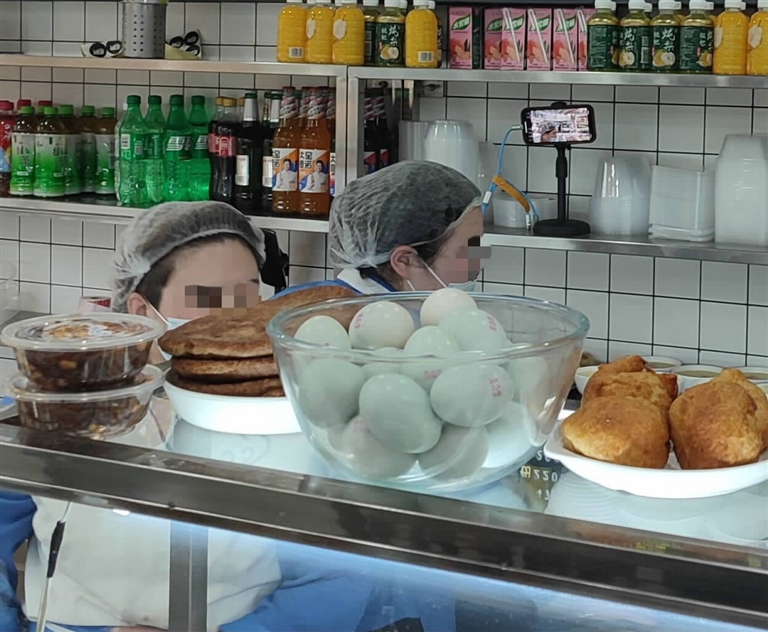 北京朝阳区一家老字号小吃店,从早忙到晚,提供各类面点、小吃、炒菜。附近的大爷大妈,尤其喜欢到这里来享用早餐,面茶、炸糕、炸豆腐汤,吃的就是老味道。可他们没注意到,就在点餐柜台背后的货架上,一台手机,连着电源,全天不间断直播店内的用餐实况。