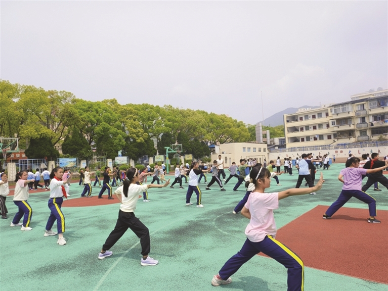 “花式跳绳操是我们大课间和体育课的重要内容,中间会随着音乐有节奏地变换,学生一点也不枯燥。在保障开齐、开足、开好体育课程的同时,学校变着花样让学生爱上运动。”舟山小学体育教研组长汪鲁杰向记者介绍。