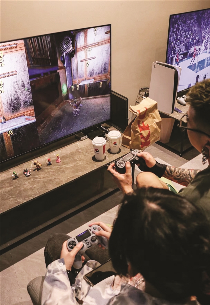 “顾客来体验也不是一次性生意,一个人可能会来好几次,每次体验不同的游戏。有时需要我这里没有的游戏,我也会根据客户的需求新增,所以一直有新鲜的血液在输入,也就一直能吸引客户,这部分老客占了整体客源的30%左右。”戴颂杰说,不少家里有游戏机的客户也隔三差五到店里来玩,这主要就是图一个氛围好。