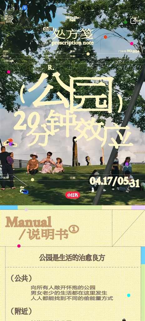而除了逛公园本身,打工人们的“公园20分钟”还有多种实现方式。如小红书网友@马达的加斯加就在平台上留言称,除了逛20分钟公园,逛超市、步行买一杯咖啡、做20分钟家务、翻20分钟朋友圈都是工作间隙的解压方式。