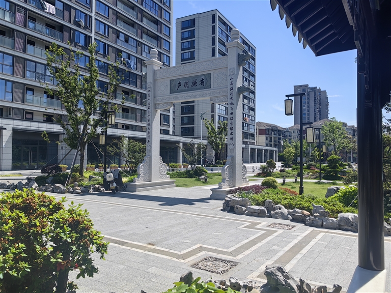 5月14日上午,记者来到了定海东门综合体旁的口袋公园,一边是车水马龙,一边是新建的居民楼,二者之间的空地如今已成了一道亮丽的风景,进士坊、仿古亭、太湖石组成了公园的古色古香,其间各色花卉盛放,赏心悦目。据了解,这处口袋公园于去年上半年建成,占地面积约1600平方米。