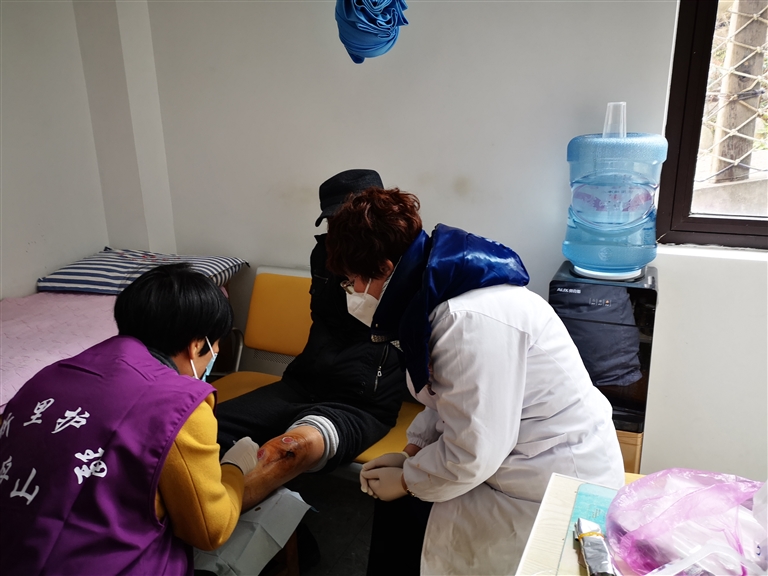 评估了患者的伤口情况,蒋伟亚还评估了患者的居家环境,告知家人需及时更换床单、床垫。“老人非常排斥住院,我就教给他处理伤口的方法,让他早上自行换一次药,晚上我上门帮他再换一次,就这样坚持了3天,他的伤口就明显见好。现在只过了一个多月,他的压疮已经恢复得很好了,老人高兴得不得了。”