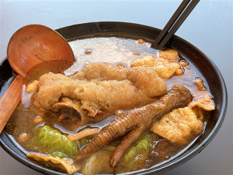 最近婷婷在店里又上新了虎皮猪脚,让肉肉爱好者欣喜不已,喜爱的客人吃完了还意犹未尽地打包回去。确实是不一样的滋味,整只浸在汤汁里的猪脚,咬一口,依然是软软糯糯,炸透了的猪皮吸满了汤汁,猪皮的胶原蛋白融合着高汤的精华,是每一口的满足。