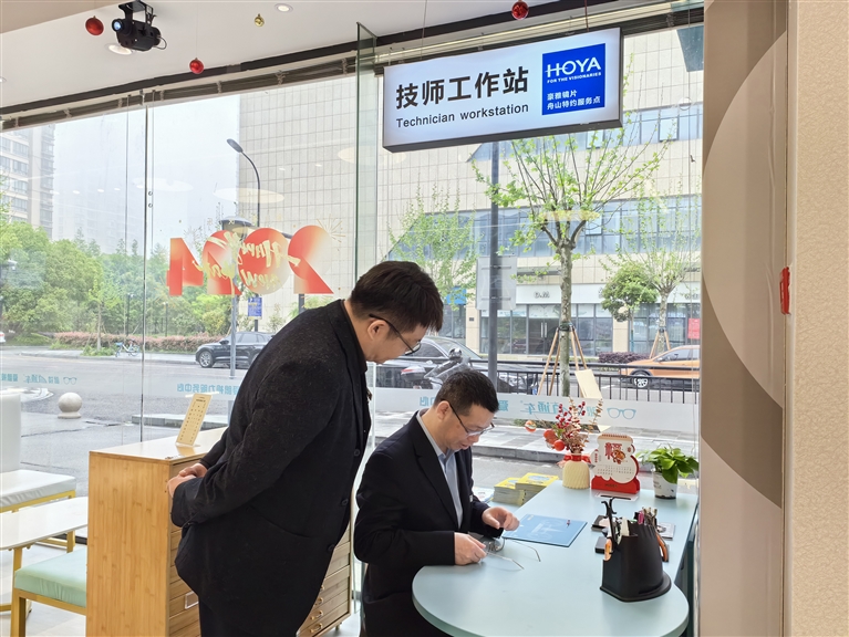 除了引入硬实力产品,眼镜直通车长升路门店还新增了一处技师工作站,入驻了一批具有专业技师资格证的配镜技师,针对学生近视管理和成人渐进提供相关服务。作为豪雅、蔡司、依视路等舟山特约授权的经销商,技师工作站不仅针对该公司客户,更面向全市消费者,提供相关售后服务。如果遇到镜片或者镜架需要调整、近视度数复查等,都可以在这工作站得到“一站式”的解决。