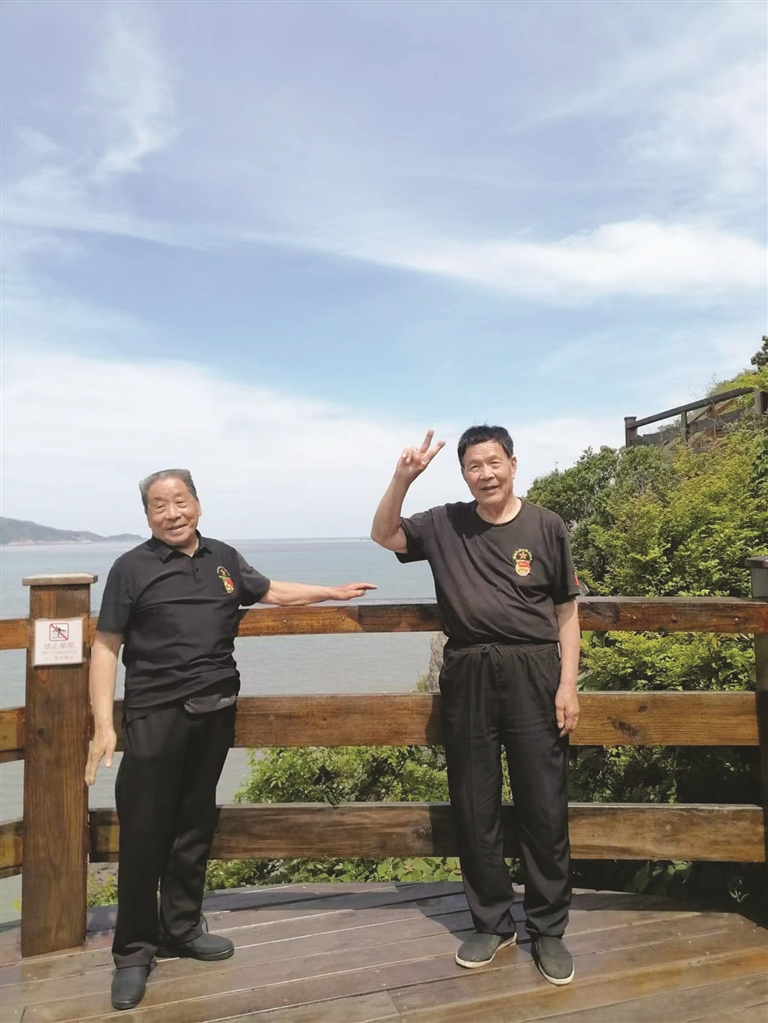 图为来舟山寻找老战友的两位老兵