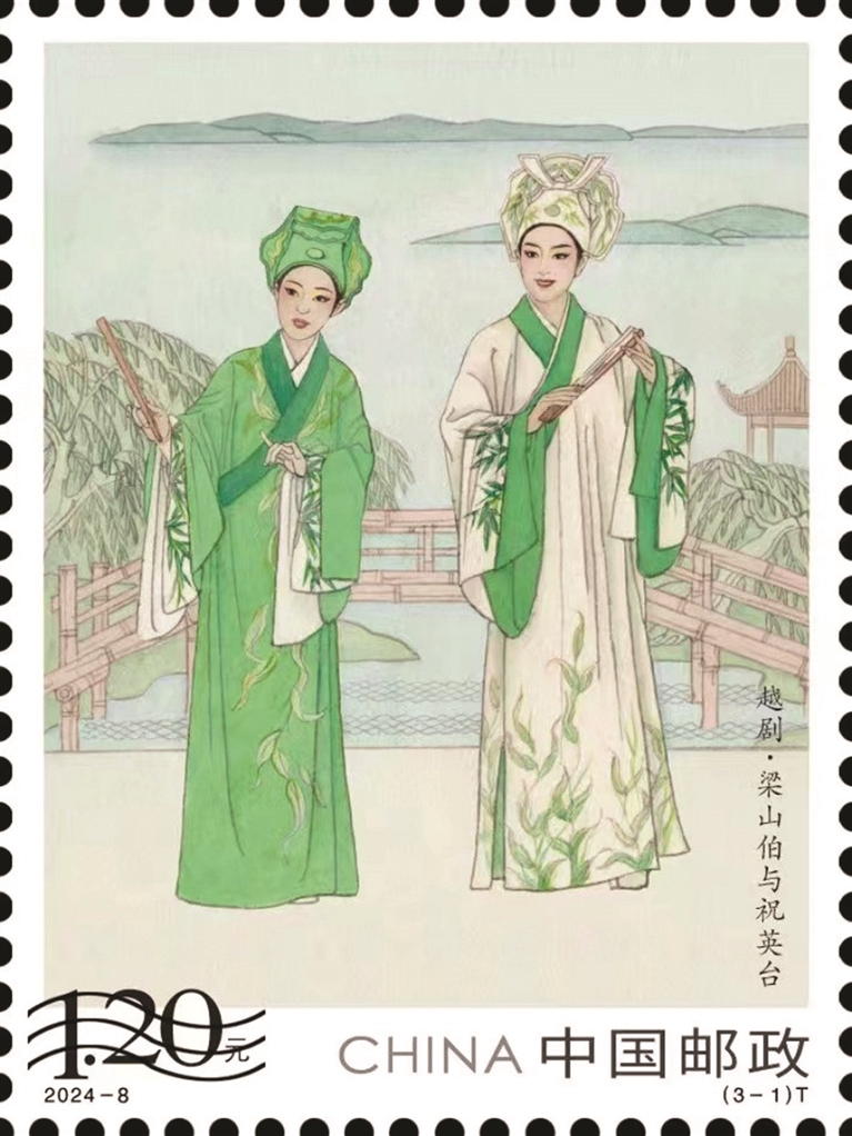 三枚邮票分别呈现《梁山伯与祝英台》《九斤姑娘》《陆游与唐琬》三个经典剧目,均是浙江小百花越剧院几代艺术家们传承创新、精益求精所凝结的扛鼎之作。