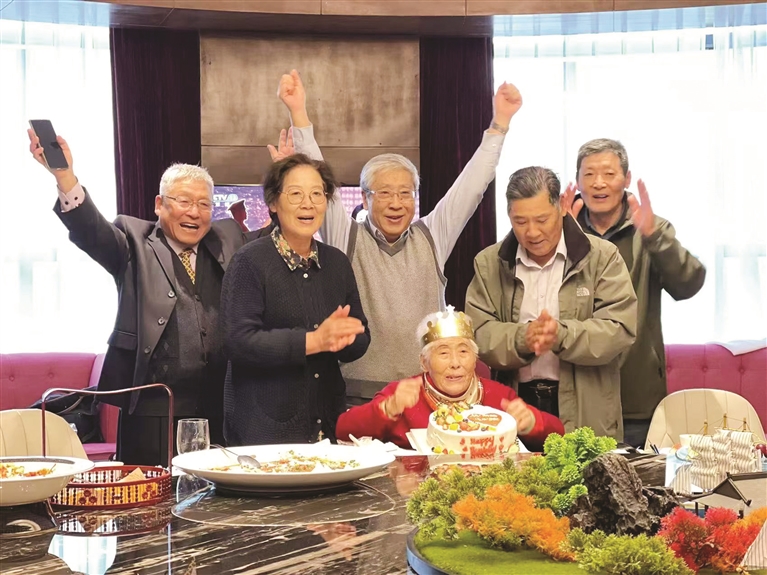 比如,百岁高龄的她会熟练地用iPad,并在微信群里告诉孩子们:“今天晚报记者来公寓看我,真开心!”