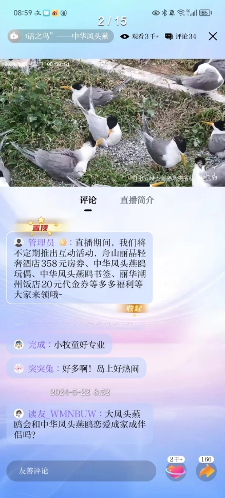 “舟山是个好地方,鸟也喜欢在这里安家。”“小中华凤头燕鸥要孵多长时间才出壳?”“怎么去当志愿者呢?”……网友们在观看中收获感动,纷纷留言。