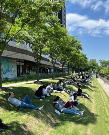 另一方面是时间成本带来的最优解。“触脚可及”的公园、草坪为上班族省去了许多时间成本。
