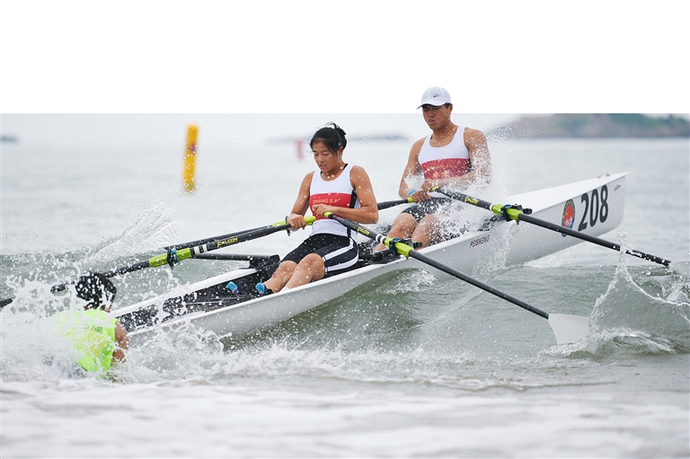 伴随着零星小雨,昨天上午,2024年全国海岸赛艇沙滩冲刺公开赛(舟山站)暨浙江省第四届海洋运动会海岸赛艇沙滩冲刺赛在舟山市朱家尖南沙海滩开赛,竞赛项目设置男子单人双桨(CM1x)、女子单人双桨(CW1x)和混合双人双桨(CMix2x)。据了解,本次比赛为期3天,共吸引来自全国19个省份的选手参加。记者 姚凯乐 摄