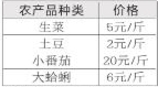 东海百里文廊共富集市果蔬价格表