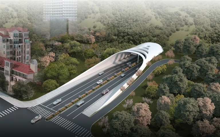 据介绍,灵秀隧道路线全长1302米,隧道左洞长1186米、右洞长1184米,为双向四车道隧道。项目施工内容包含两座连拱、小净距隧道及排水、交安设施、隧道机电、路灯、景观绿化及附属配套等工程。