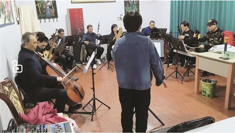 “我加入乐队的时间还是比较晚的,前面已经来来去去好多人了,有些年纪大了退出了,有些日常生活琐碎退出了,能坚持下来的,都是对民乐、越剧非常热爱的人。”方森能表示,他们这帮热爱民乐的人聚在一起,其实没有正式的乐队名,弹三弦琴的董国宁、敲扬琴的陈文彬和拉主胡的张国华等等,包括他在内的8个人也算是戏曲角演出队的固定成员了。