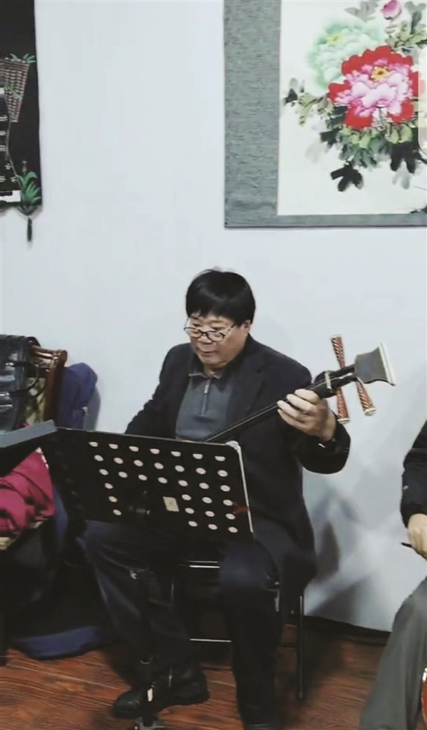 其实,方森能算得上是戏曲角演出队现场乐队的“老人”了。1988年那会儿,方森能已经调岗到行政部门,但是对戏曲的热爱不变。每每下班路过北安公园,听到戏曲角传来的“咿咿呀呀”声,总忍不住去凑个热闹。尽管他唱京剧,但也拉得一手好二胡,所以他会帮着拉两曲。不过正式加入到乐队还是在他退休后。