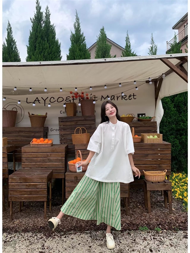现在,越来越多的年轻人选择与大自然深度接触,比如“公园20分钟效应”,利用自然给予的能量来重拾生命力和自己对生活的热爱。植物系穿搭也是如此,在大自然中寻得色彩灵感。以绿色为主,大地色、米黄色系为辅。季洁说:“这些天,街上路边的月季花都开了,有些白色橘黄色的月季一丛一丛的,特别好看,我就根据这样的颜色给自己搭配了一套衣服,上身是白色短袖立领衬衫,下面是绿色条纹长裙,搭配一顶米黄色的帽子,背一只米黄色的帆布包。我的朋友们看到我那天的穿搭,都说很有生命力,很舒适。”